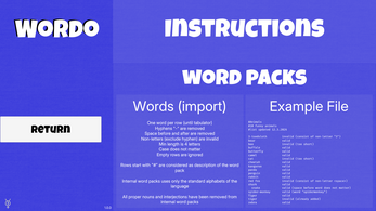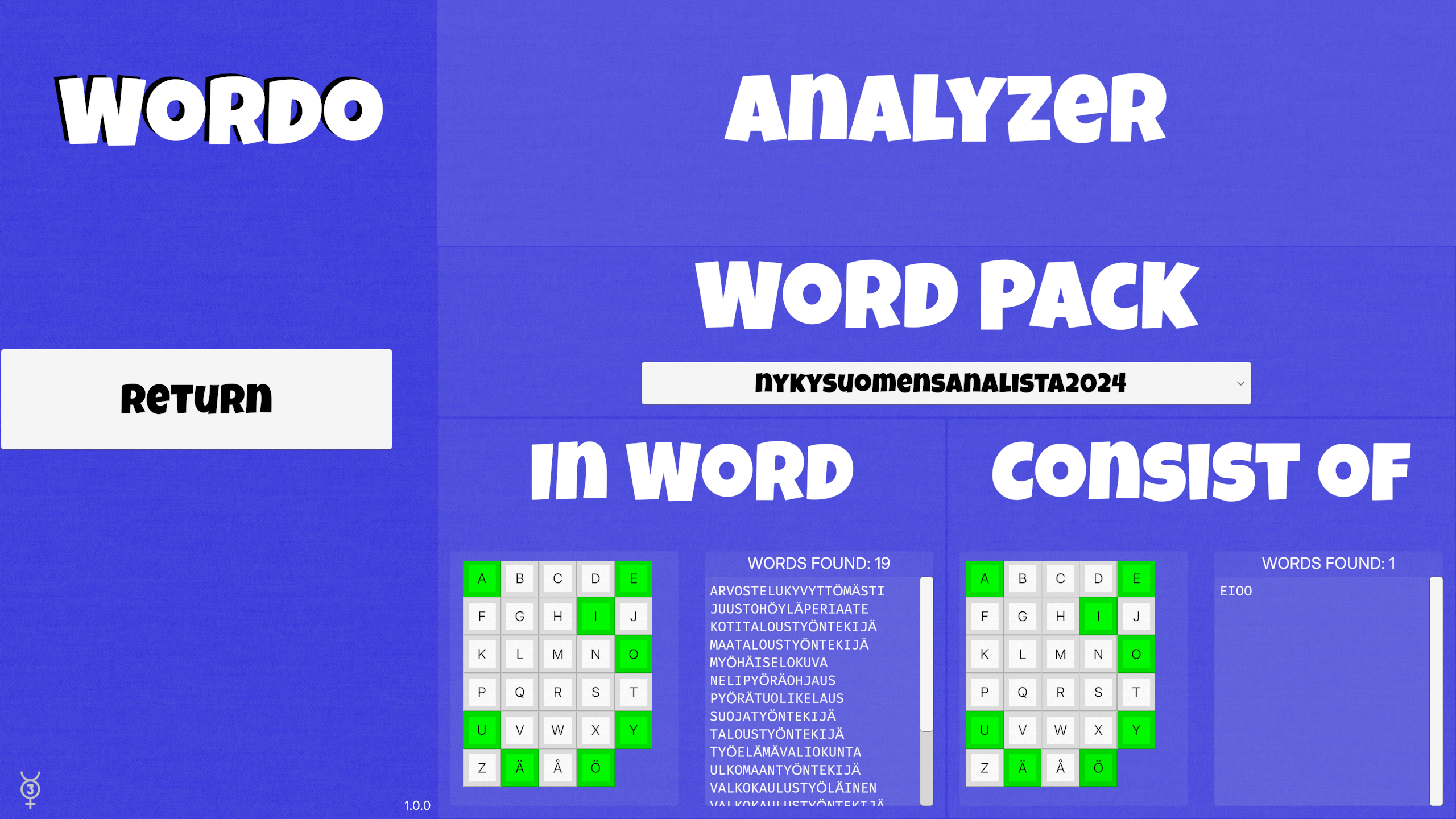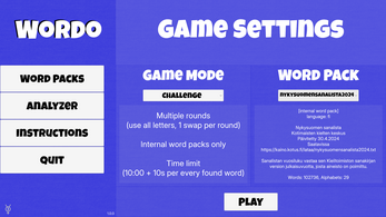 Built-in word packs include both Finnish and English, allowing you to play in your preferred language.